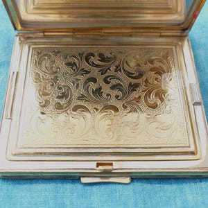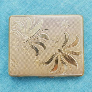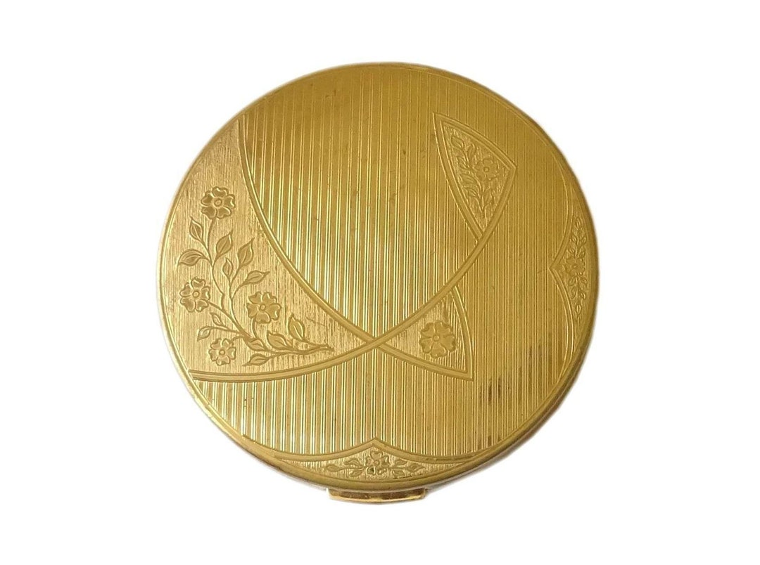 Other | Vintage Large Gold Tone Usa Powder Compact Flower Engraved ...