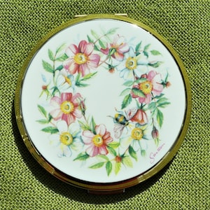 STRATTON Powder Compact, White With Pink & White Flowers With Bee ...