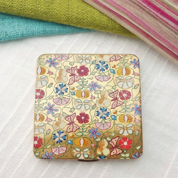 Mid century powder compact with enamel flower spray design - Ruby Lane