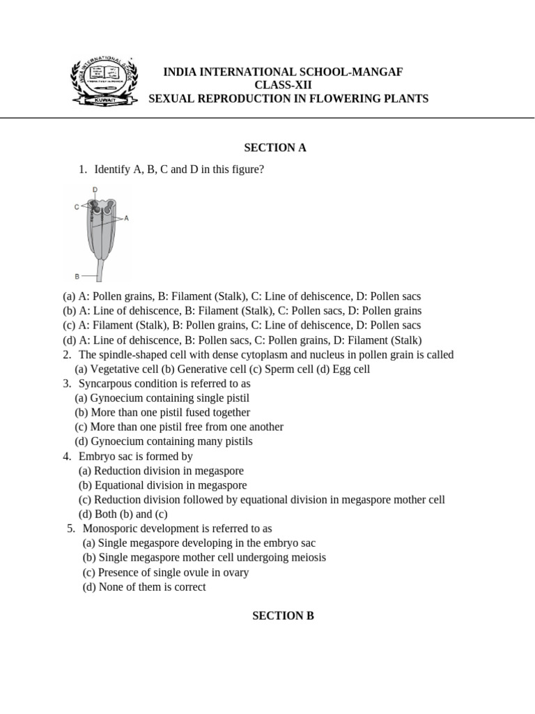 Sexual Reproduction in Flowering Plants-Worksheet | PDF | Fertilisation ...