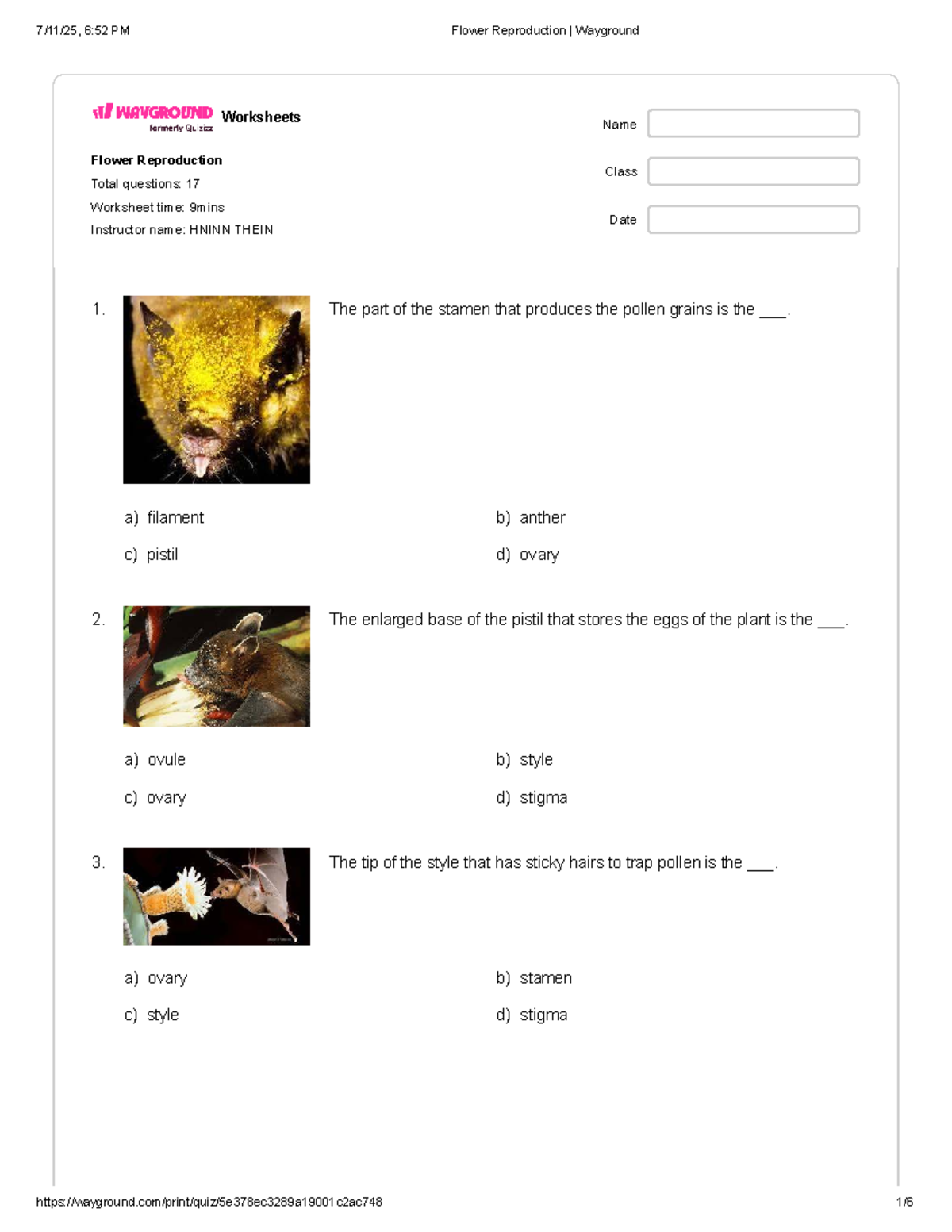 Flower Reproduction Worksheet (Course Code: 6:52 PM) - Studocu