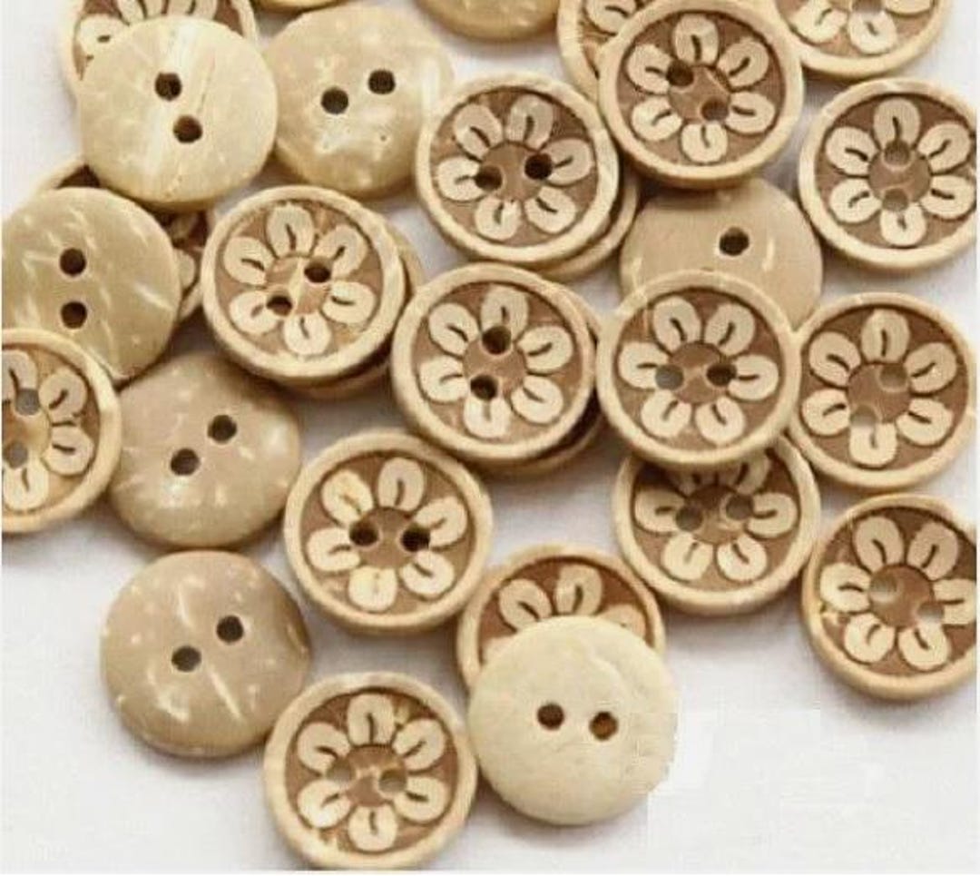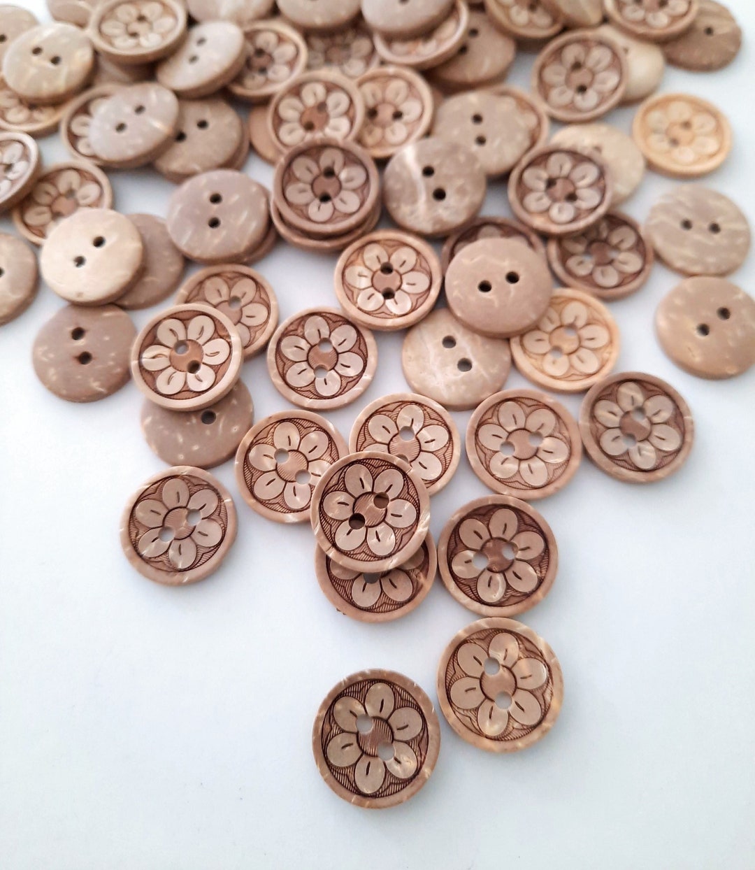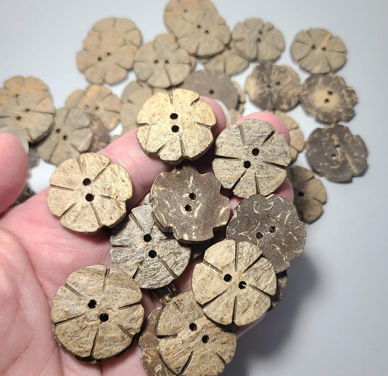 50 - 1" Coconut Shell Flower Button, 2 Hole Carved Vintage Buttons - Etsy