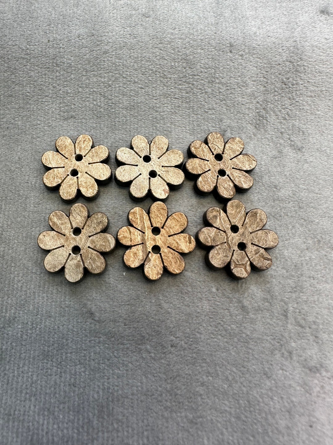 Coconut Shell Buttons Flower Design Natural 20mm a Set of 6 Eco - Etsy