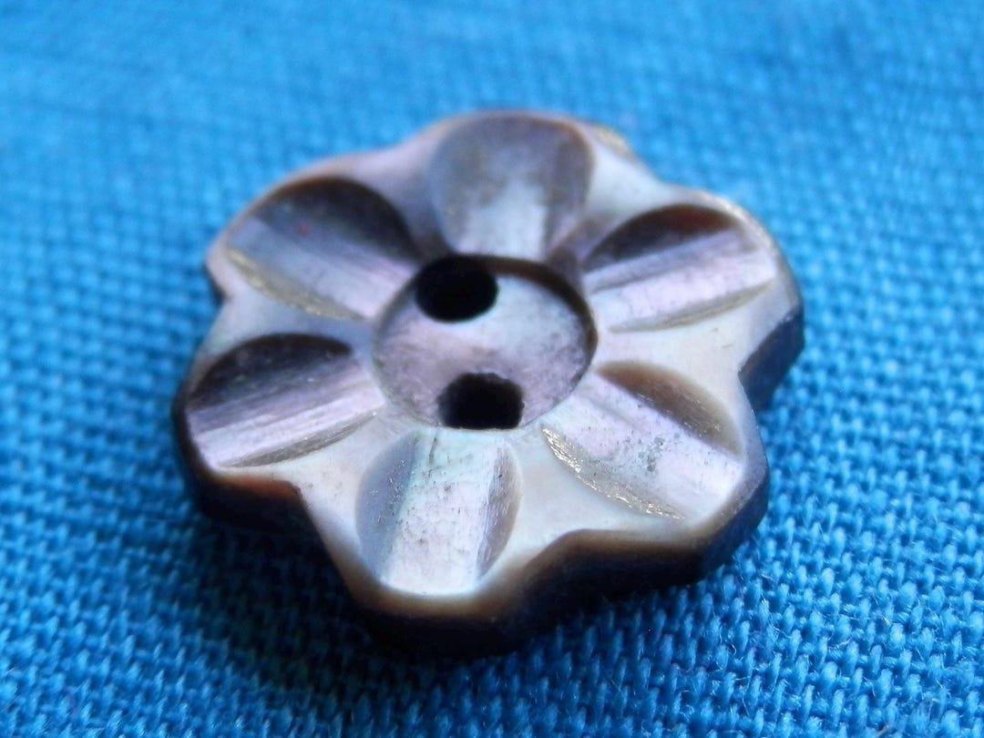 Antique SHELL MOP REALISTIC FLOWER BUTTON PIERCED w DAISY CENTER MEDIUM ...