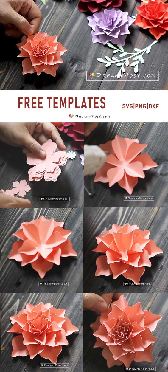 Free paper flower templates, PDF, SVG, PNG files, with super easy tutorial