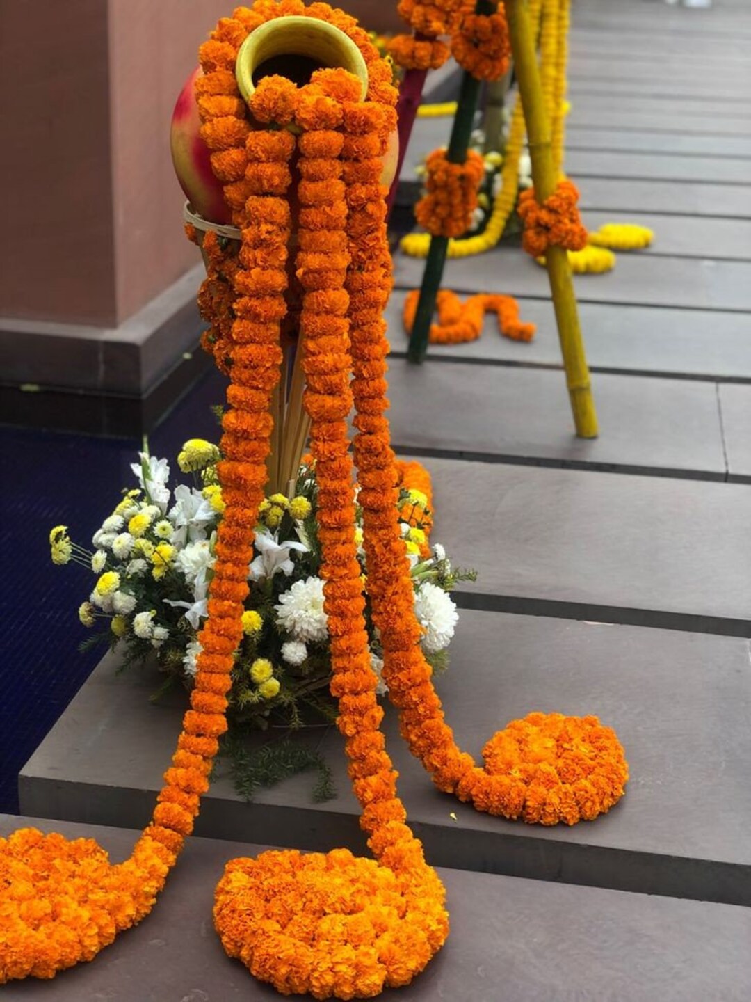 Lot of artificial marigold flower garland strings for indian wedding ...