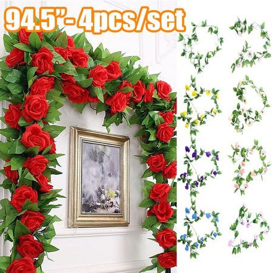 4Pcs Fake Rose Garland, Artificial Silk Flower Vines, Hanging Floral ...