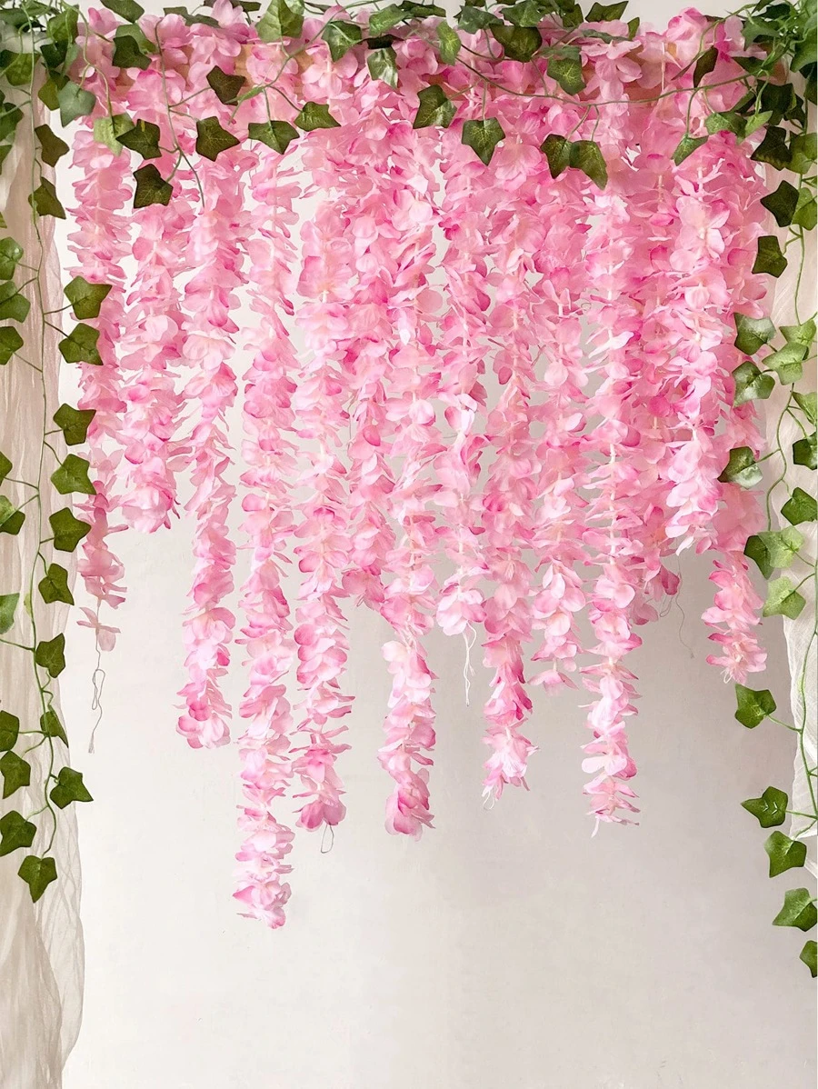 Tutuviw 10 Pack Artificial Flower Strings, 3.6 Feet Light Pink Wisteria ...