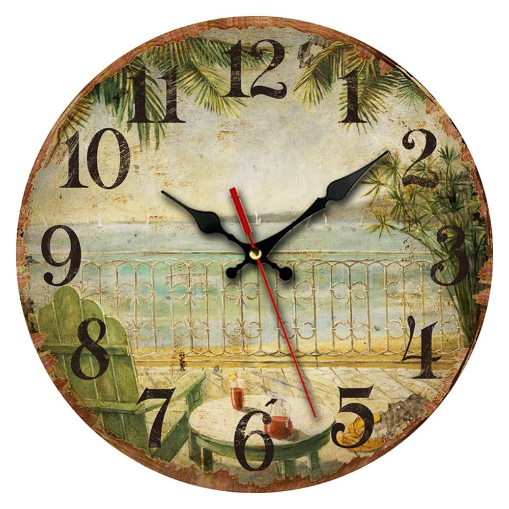 IMMEKEY Vintage Rustic Wall Clock, Silent Wooden Dial Flower Timer ...