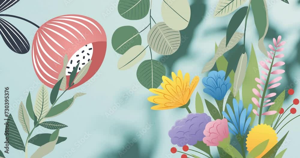 Animation of colourful plants and flowers over shadows Stock Video ...