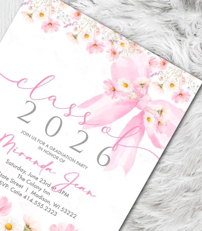 Coquette Graduation Invitation 2026, Wildflower Graduation Announcement ...