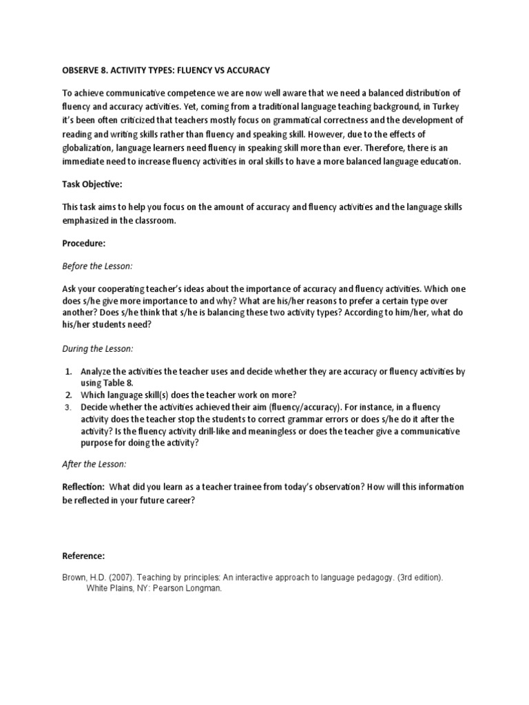 OBSERVE 8 ACTIVITY TYPES - FLUENCY Vs ACCURACY | PDF | Fluency | Teachers