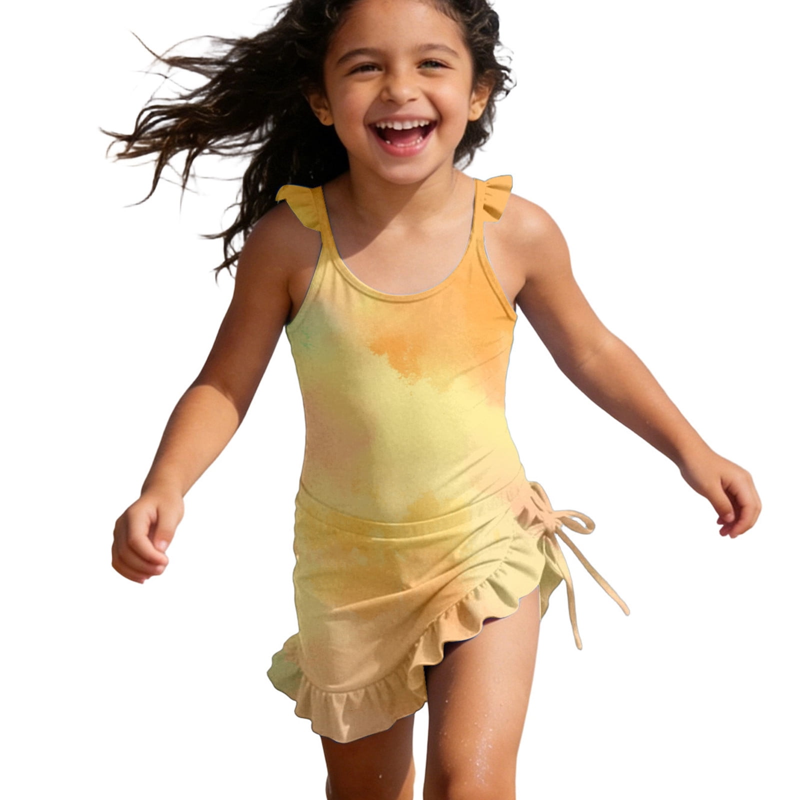 Bathing Suits for Girls Girls Tie Dye Crew Neck Flutter Sleeve Long ...