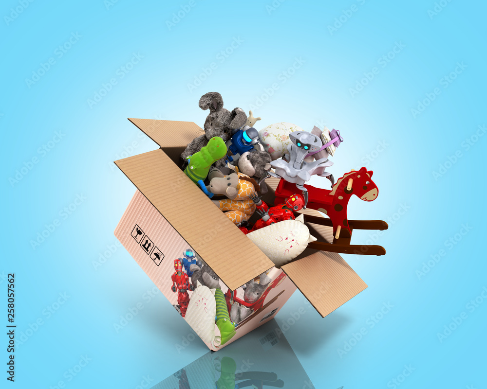 concept of product categories toys fly out of the box 3d render on blue ...