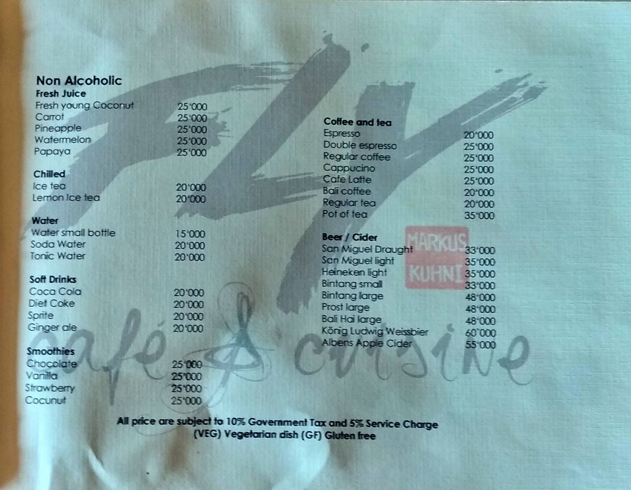 Menu of Free 2 Fly, Baga, North Goa