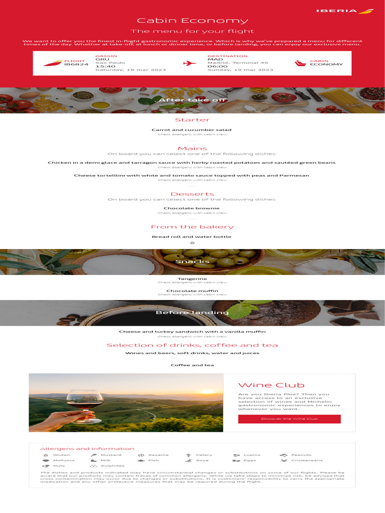 In-Flight Menu for Economy Passengers | PDF | Drink | Lunch