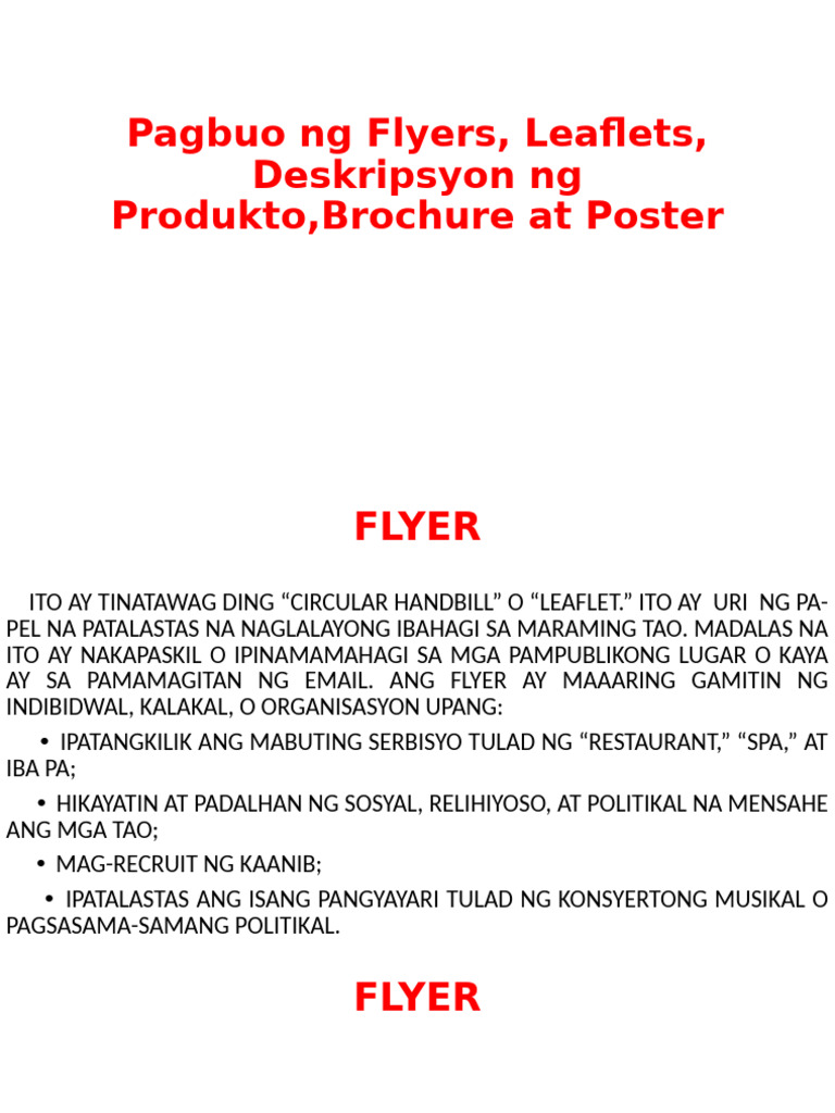 Pagbuo NG Flyers Leaflets Deskripsyon NG Produkto Brochure at Poster | PDF
