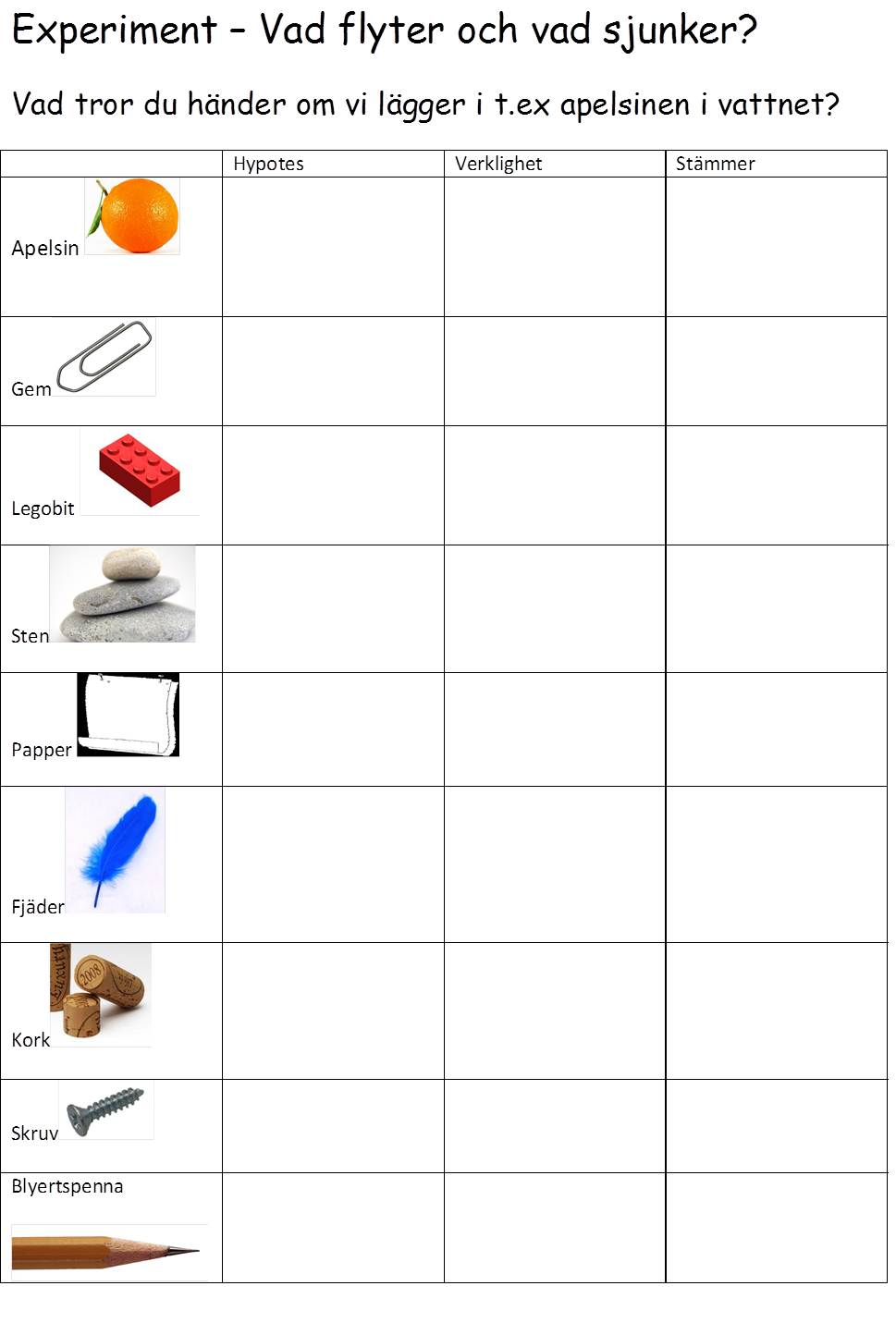 Flyta eller sjunka Hypothesis (sink or float) Swedish