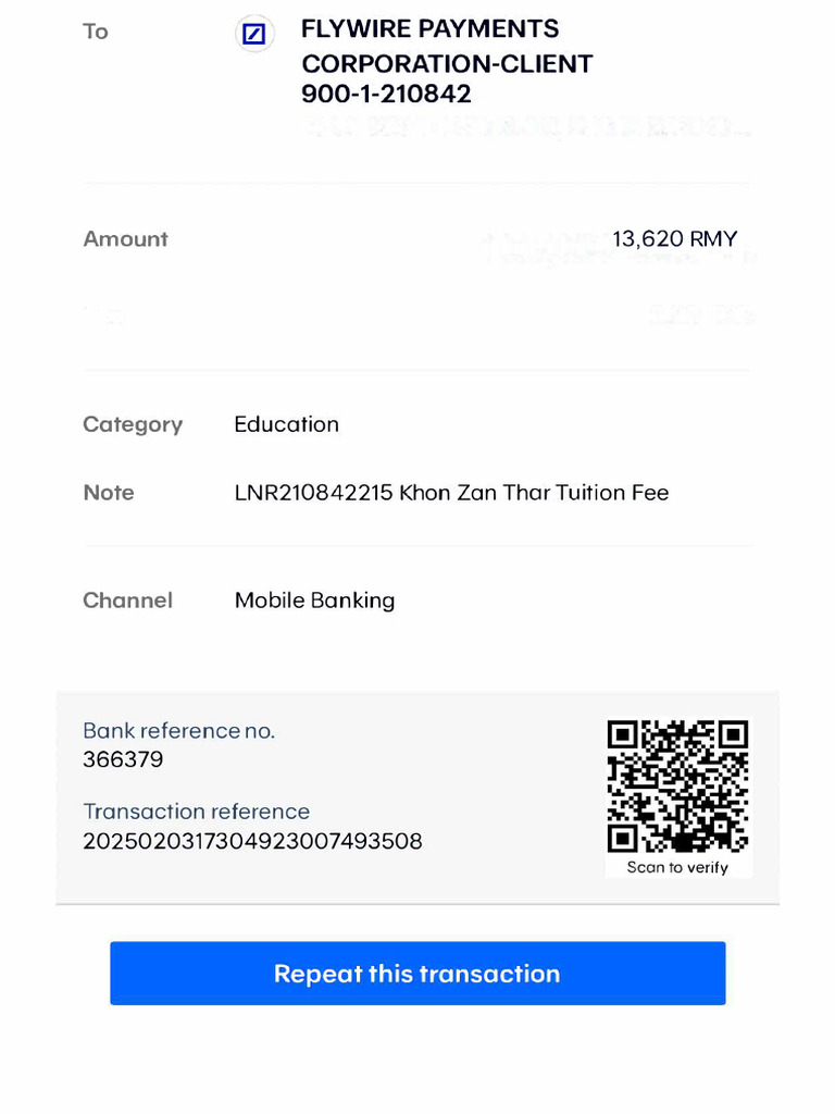 What should my "proof of the original transaction" look like? – Flywire