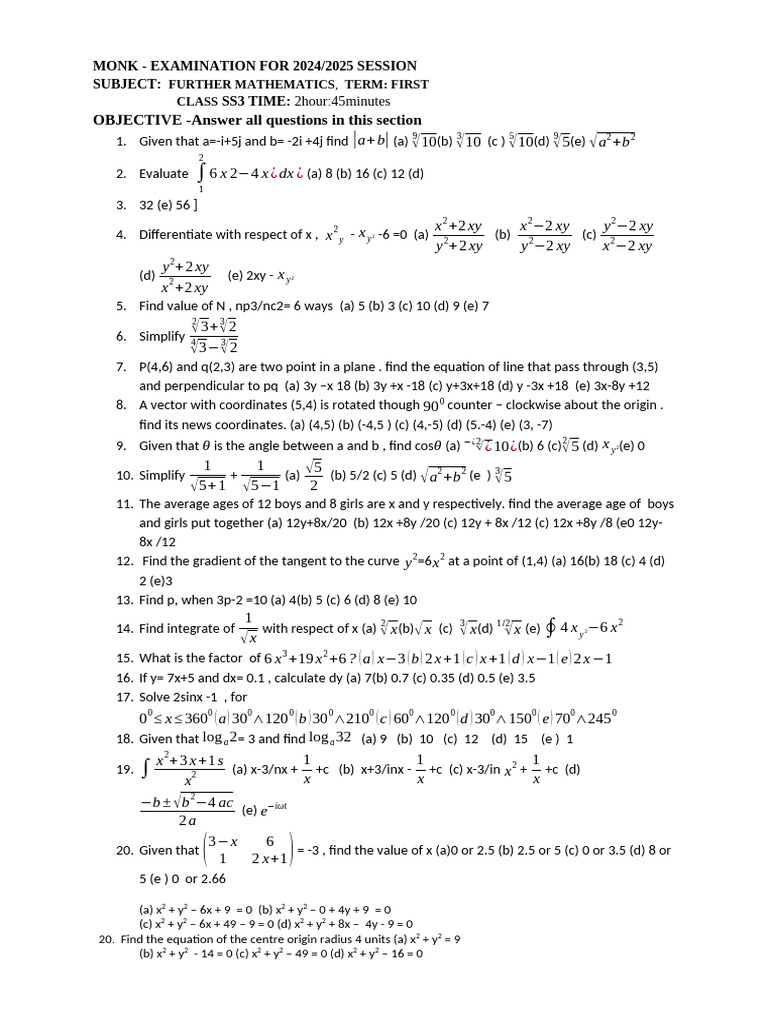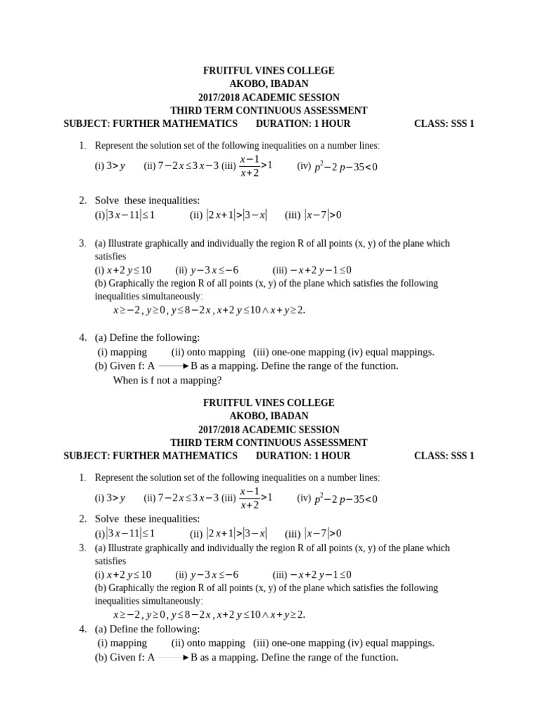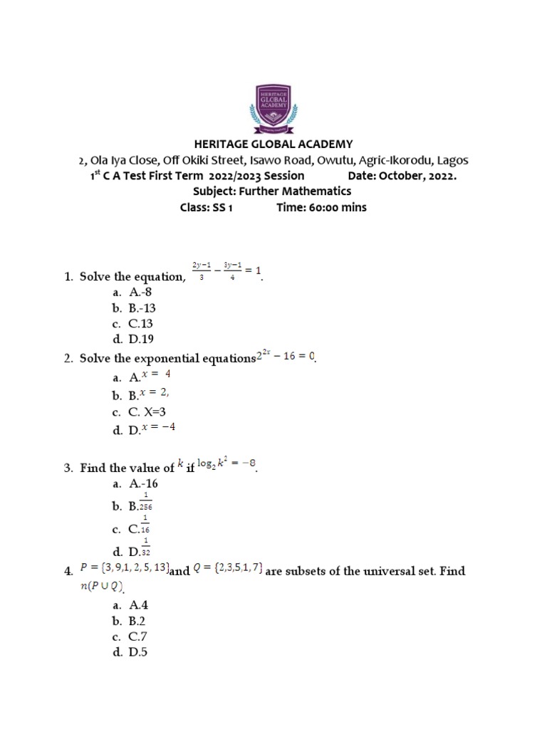 SS1 First Term Mathematics Exam 2022 | PDF | Equations | Mathematical ...