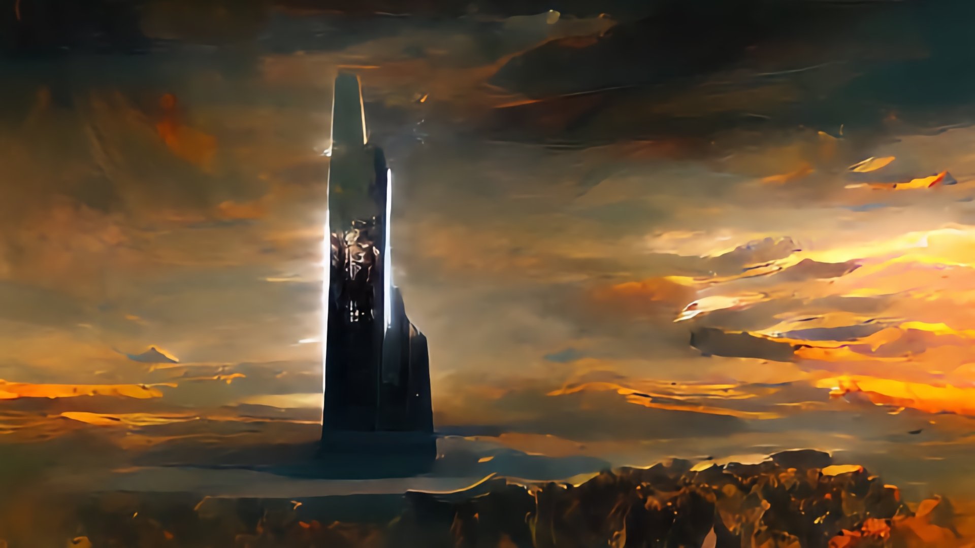 Dark and abstract floating fantasy structure on Craiyon