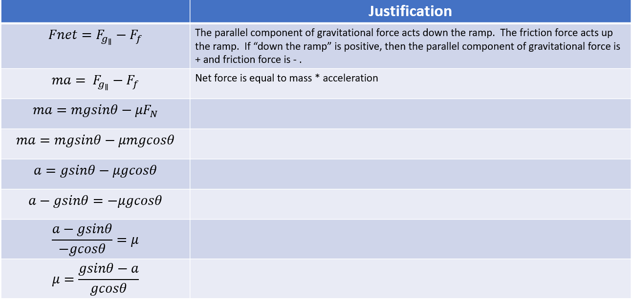 Solved Fnet = F = Fgi - Ff Justification The parallel | Chegg.com