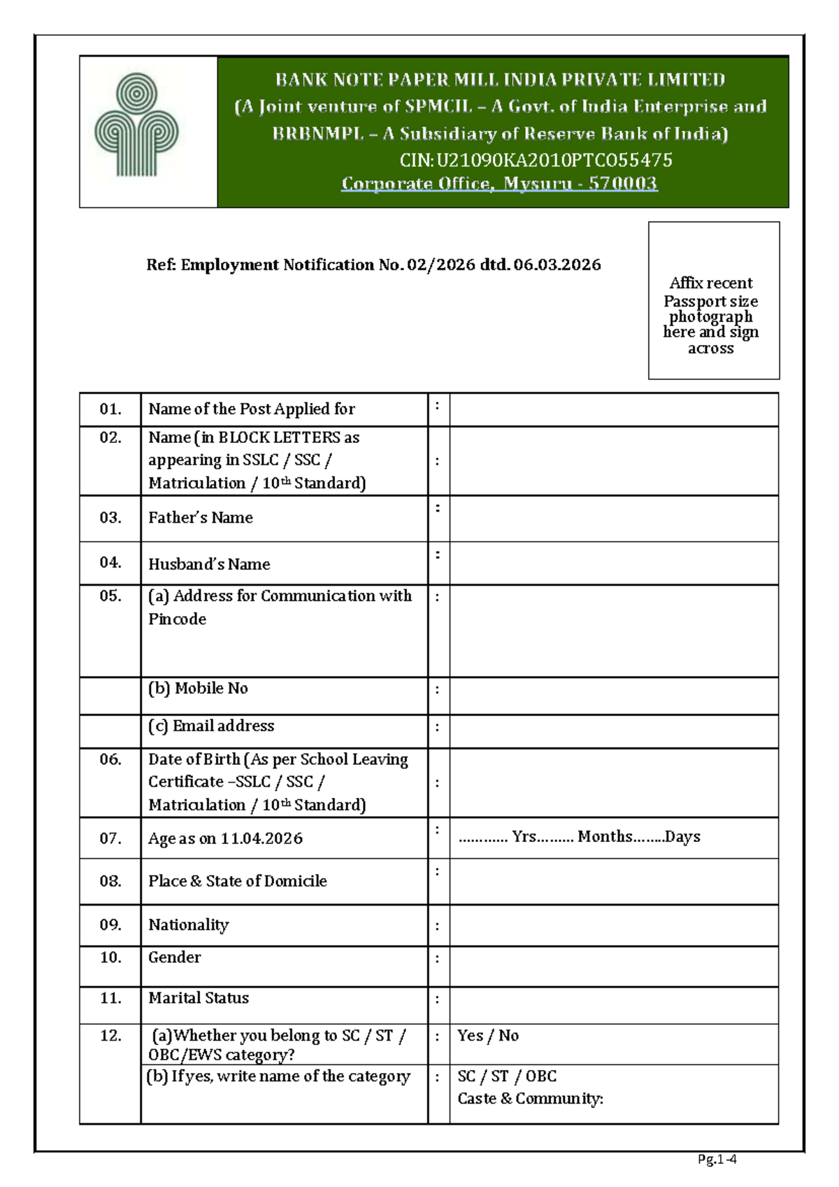 Application Form for Employment at BANK NOTE PAPER MILL (170326) - Studocu