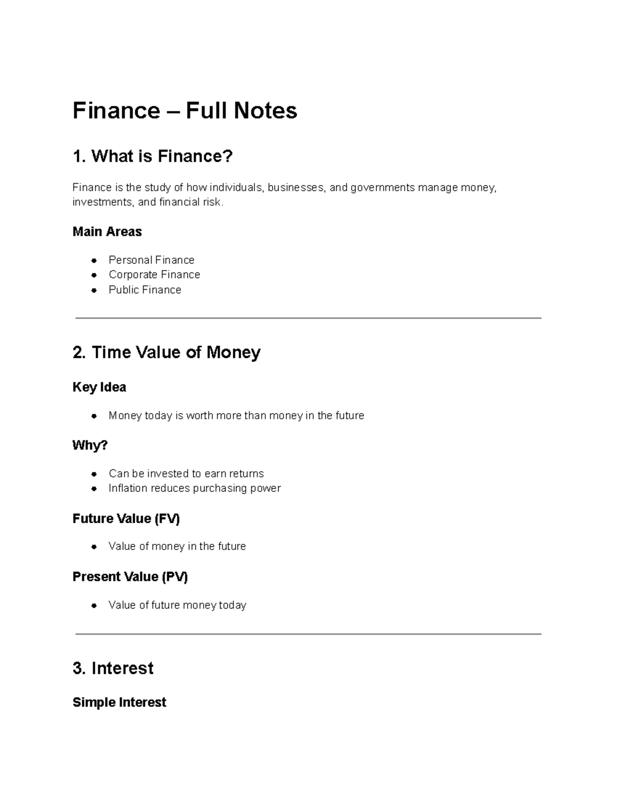 Finance Full Notes: Key Concepts and Principles - Studocu