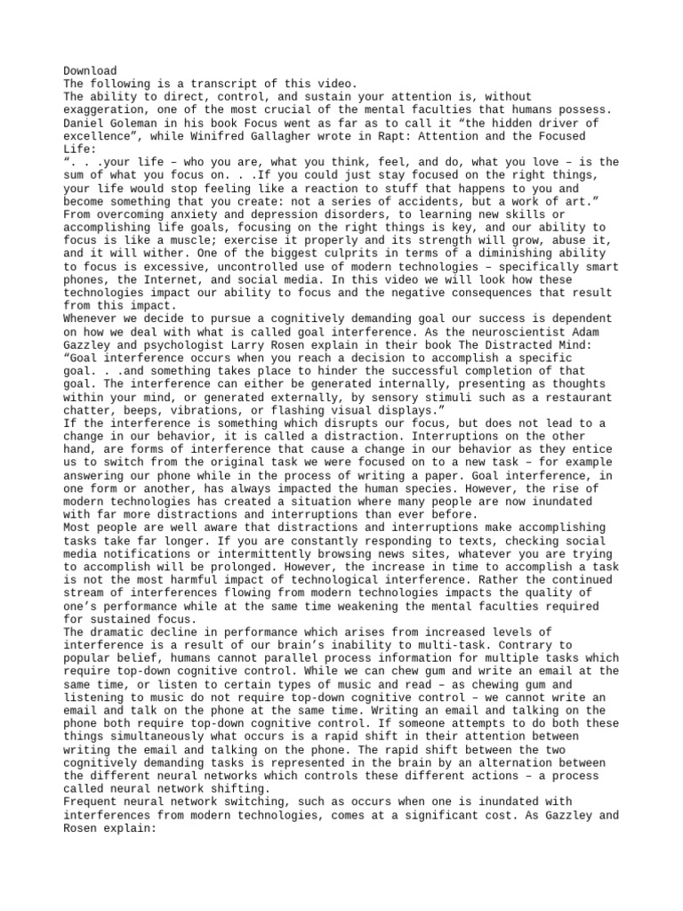 Focus Distraction Dangers Modern Technology | PDF | Reinforcement ...