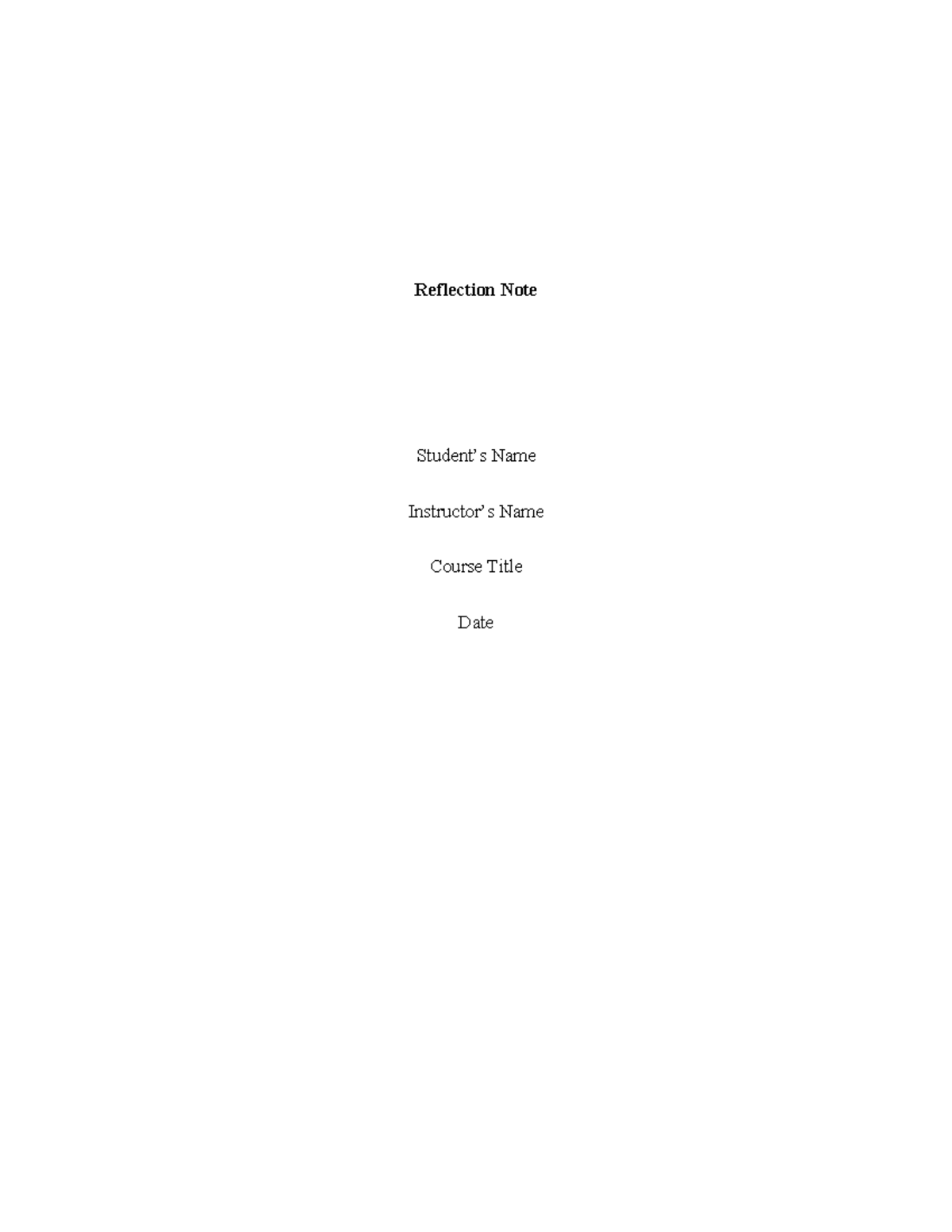 Reflection Note - Reflection Note Student’s Name Instructor’s Name ...