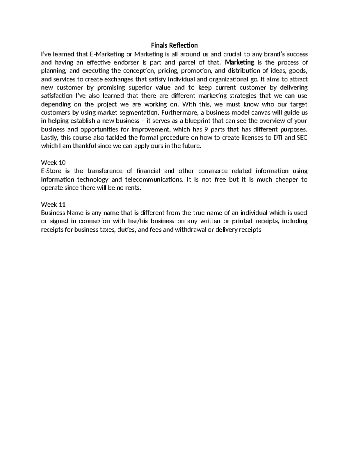 Lecture notes about Reflection of self - Finals Reflection I’ve learned ...
