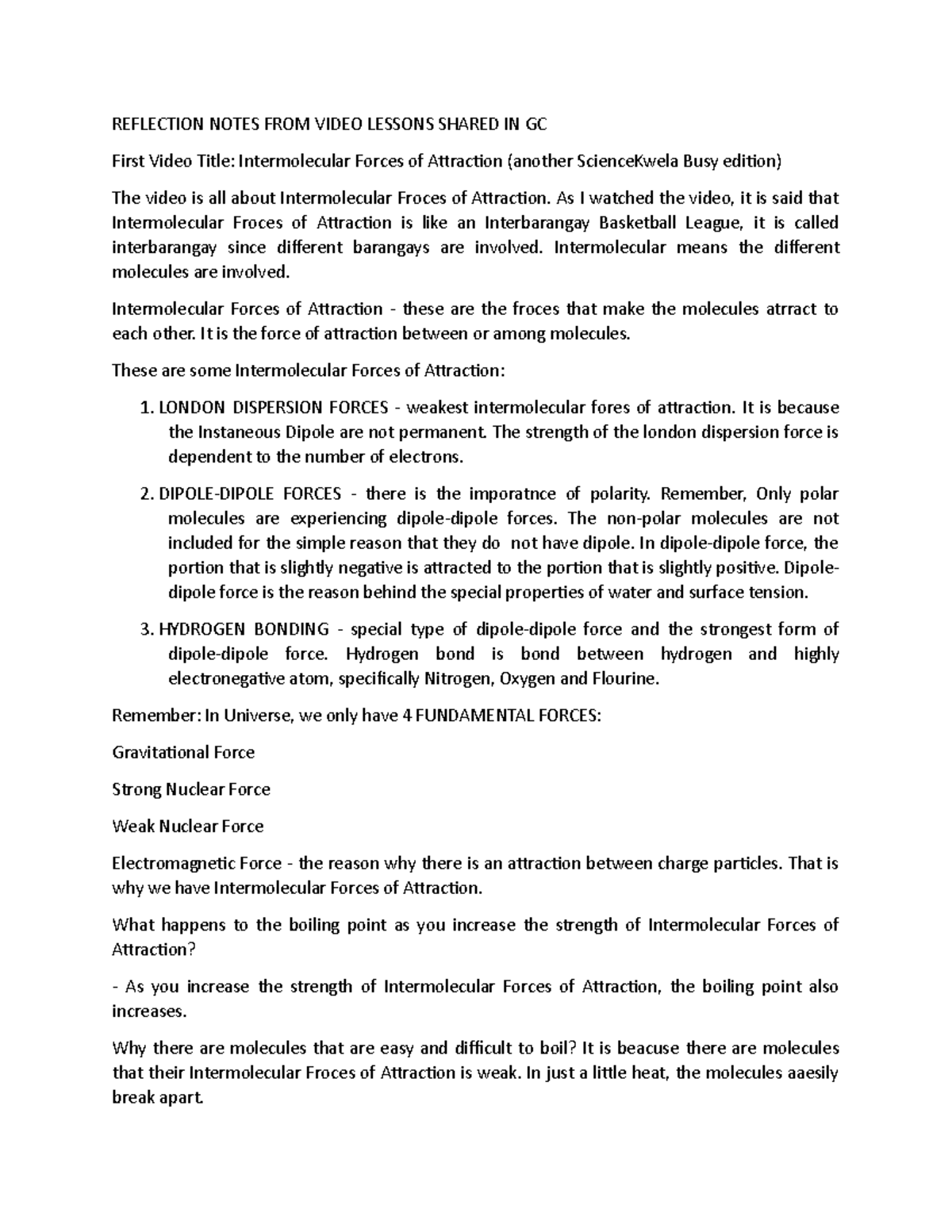 Reflection Notes - REFLECTION NOTES FROM VIDEO LESSONS SHARED IN GC ...