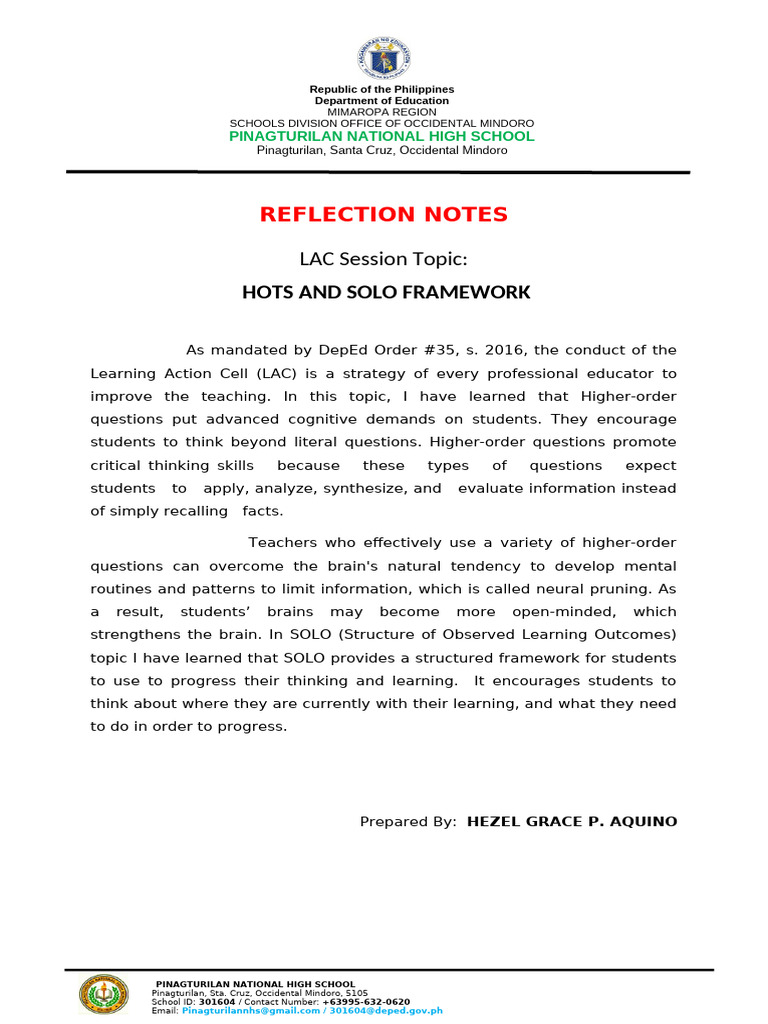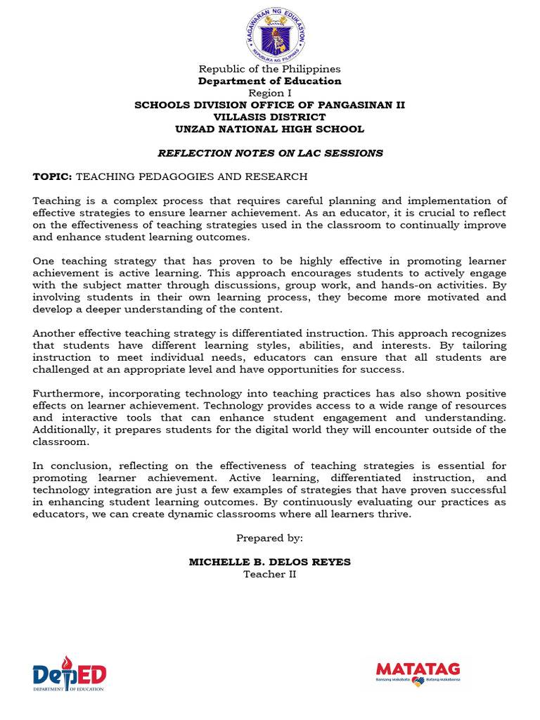 Reflection Note LAC Session | PDF | Teachers | Learning