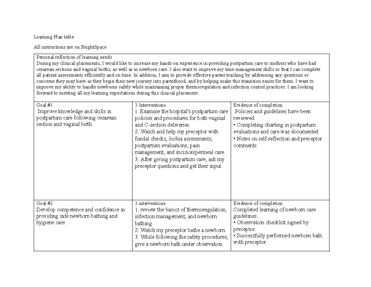 Learning Plan Review: Clinical Placement Goals & Reflections - Studocu
