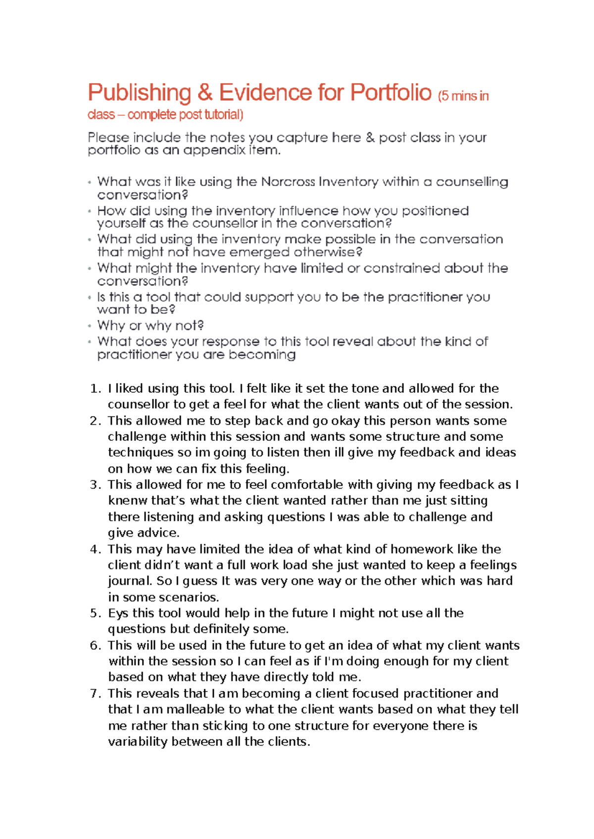 Norcross Inventory Reflection: Insights on Client-Centered Practice ...