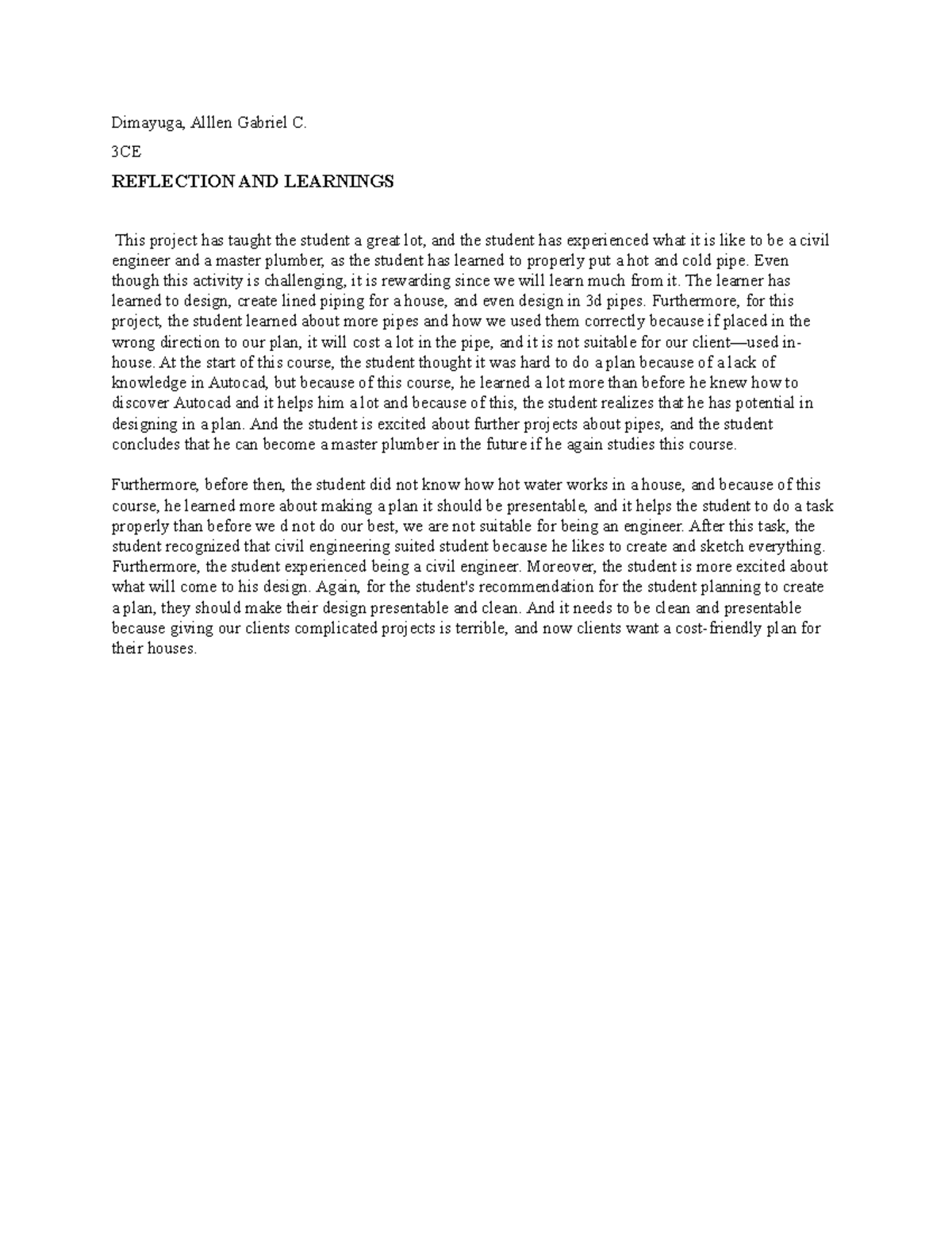 3CE Reflection on Hot and Cold Water Project Learnings - Studocu