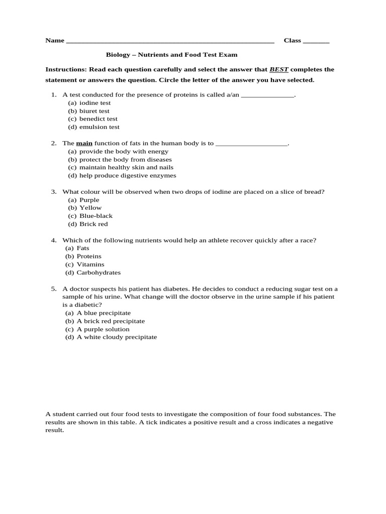 Food Test Assessment | PDF | Foods | Chemical Substances