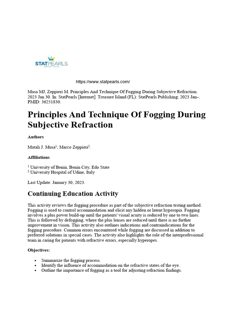 Principles and Technique of Fogging During Subjective Refraction | PDF ...