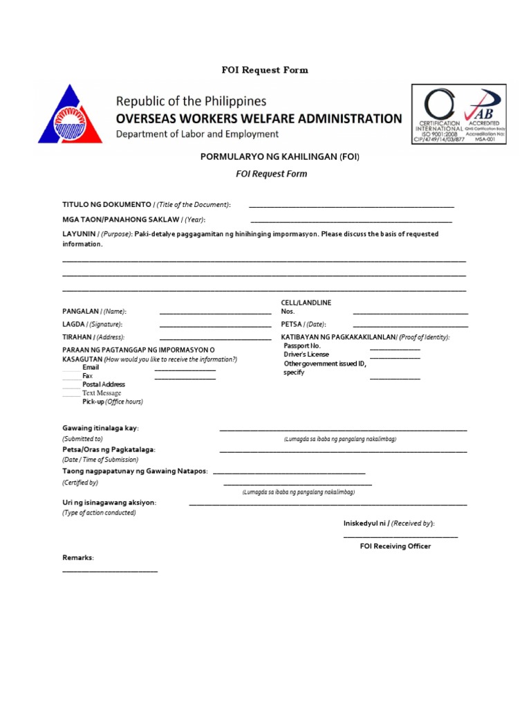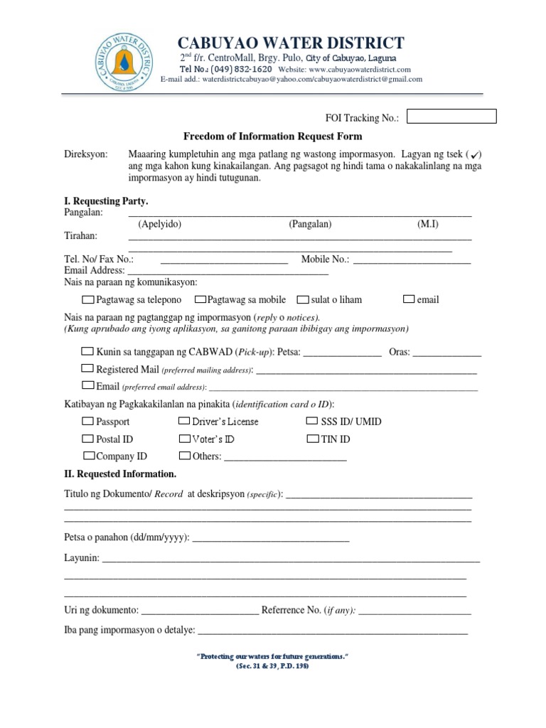 FOI Form | Municipality of Paniqui Tarlac