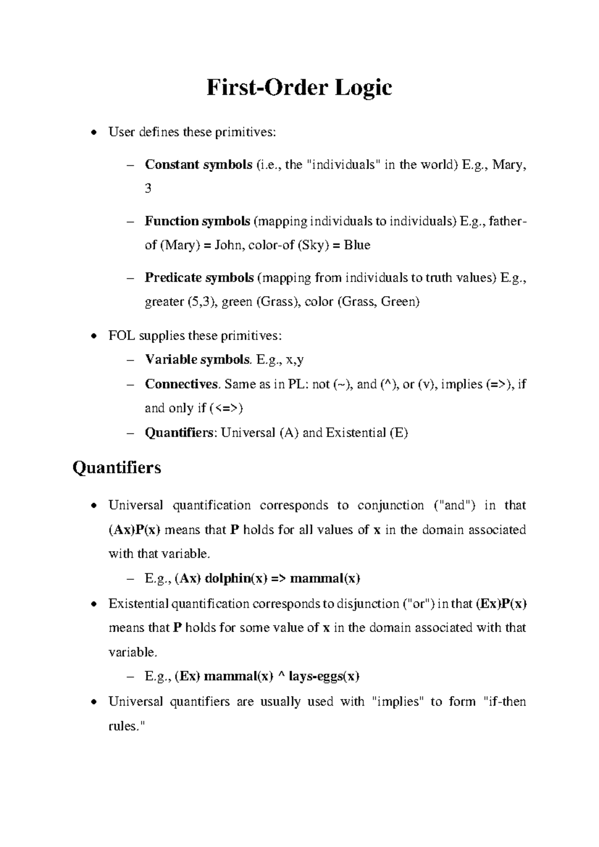 First-Order Logic (FOL) Summary and Key Inference Techniques - Studocu