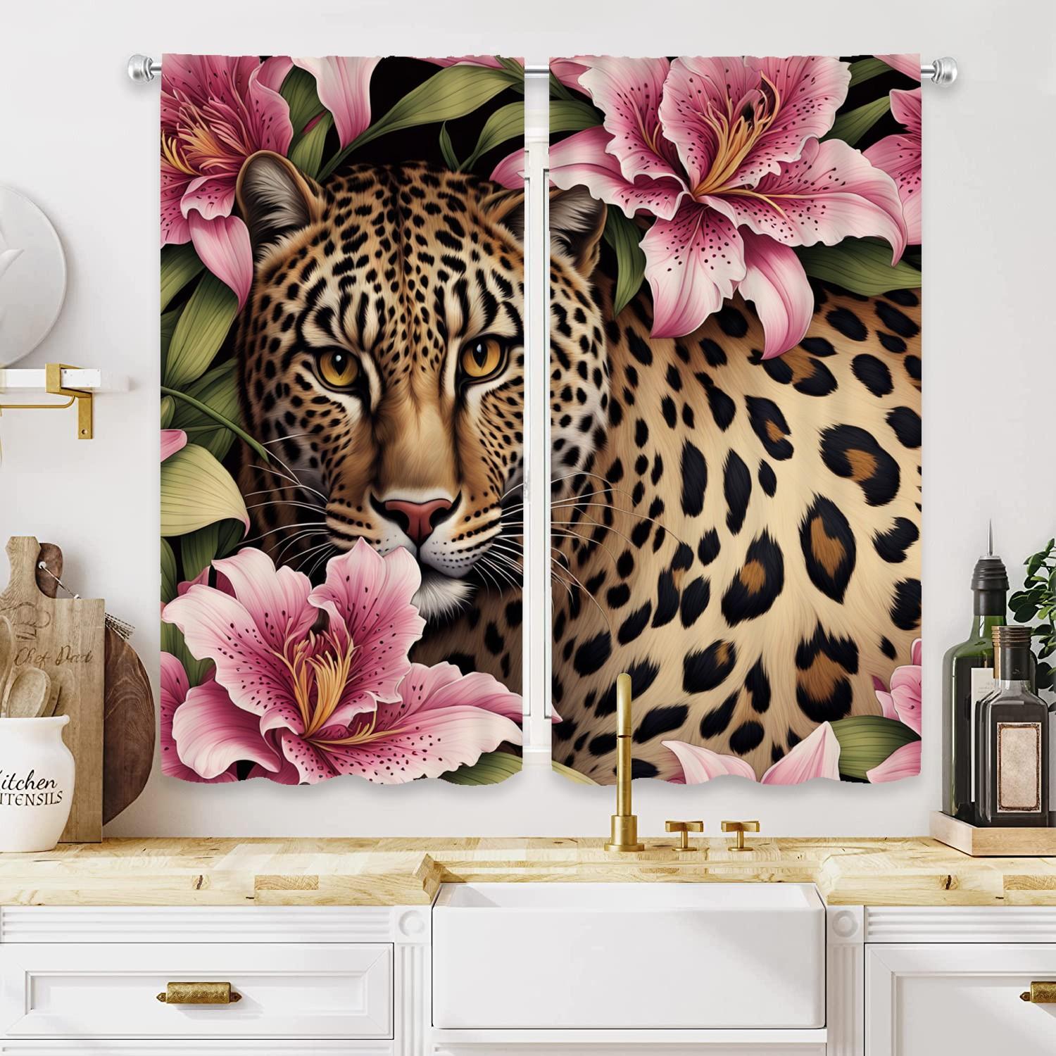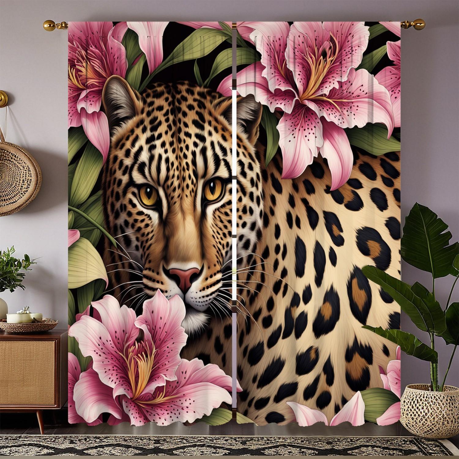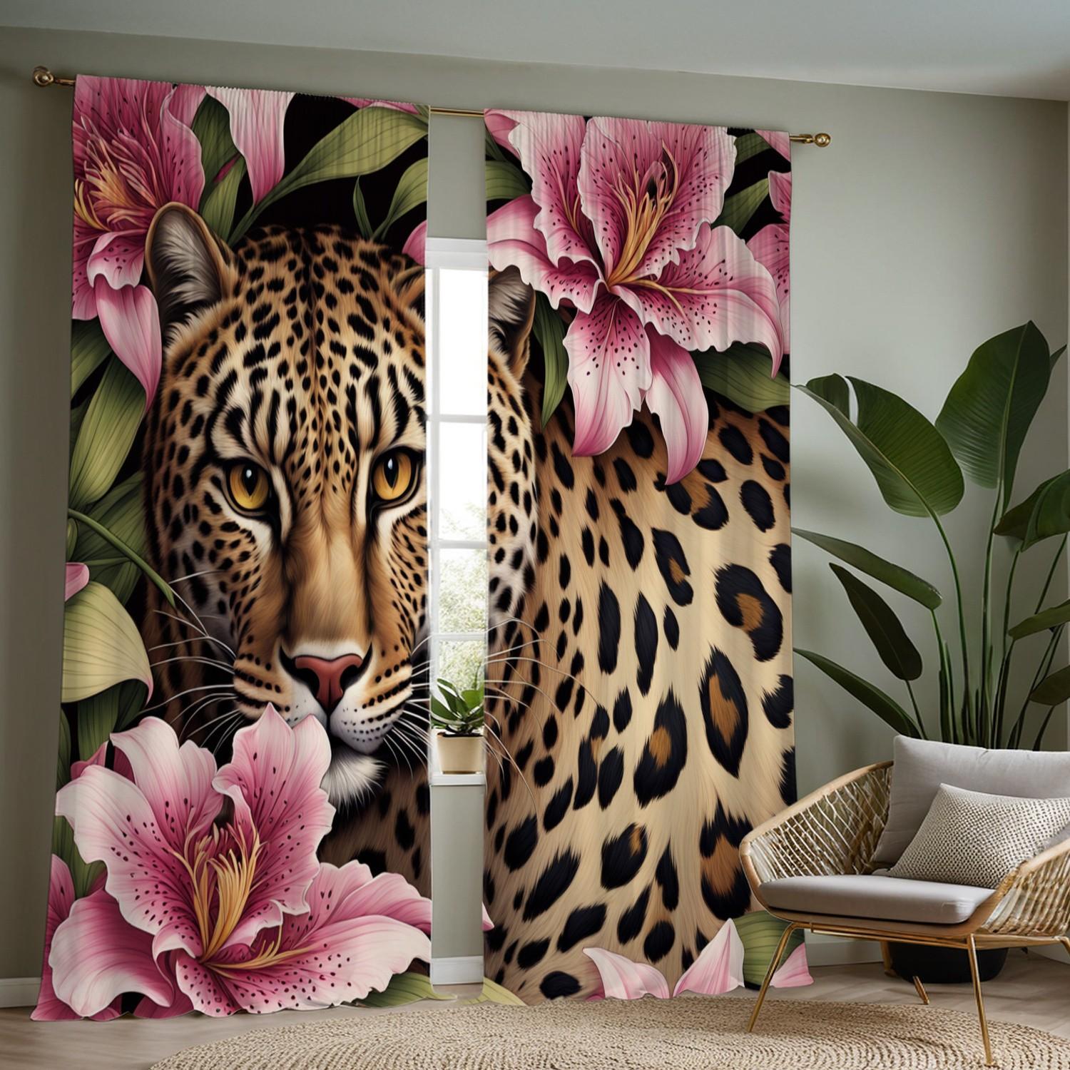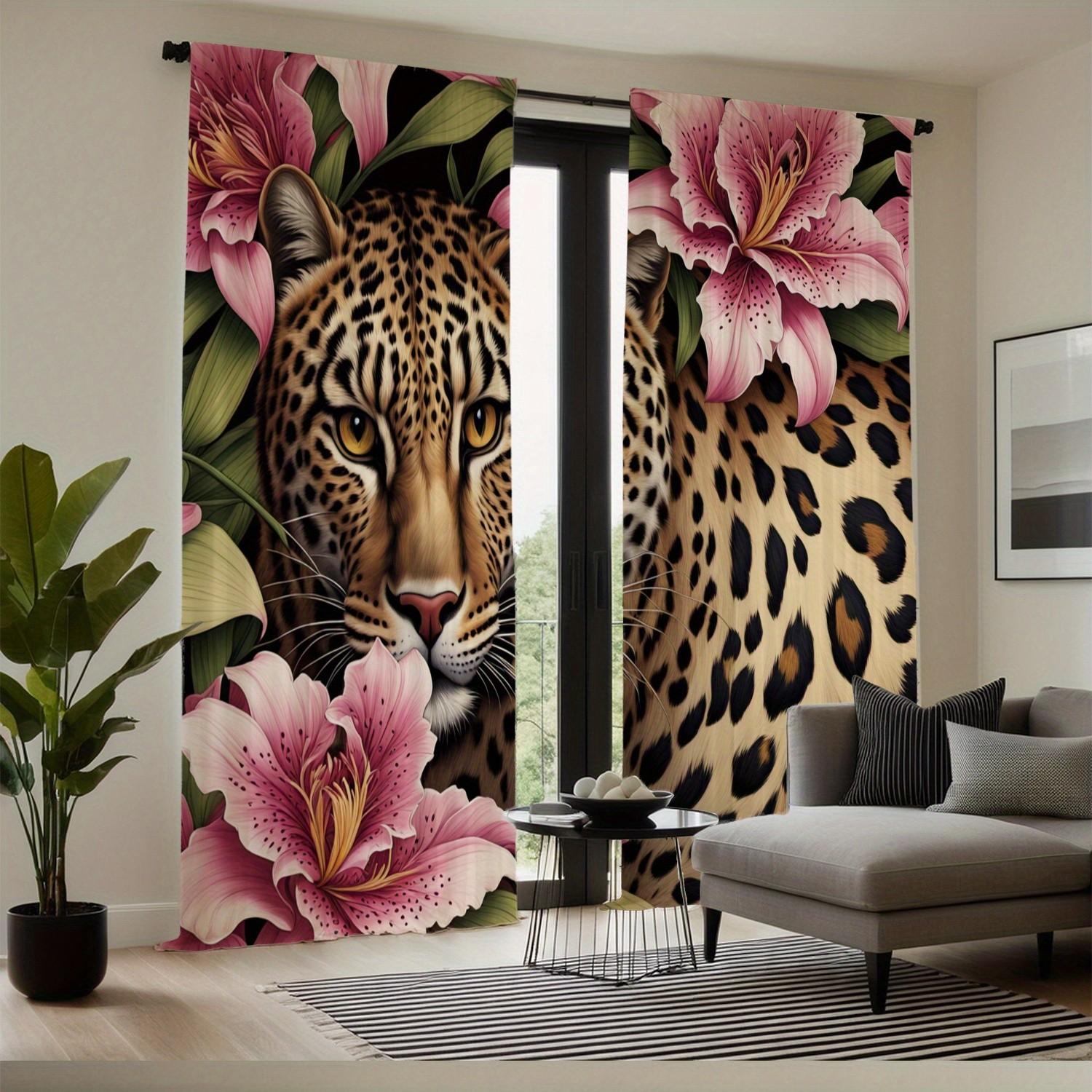 Open-Style 2-Piece HD Digital Print Curtains, Leopard Face Close-Up ...