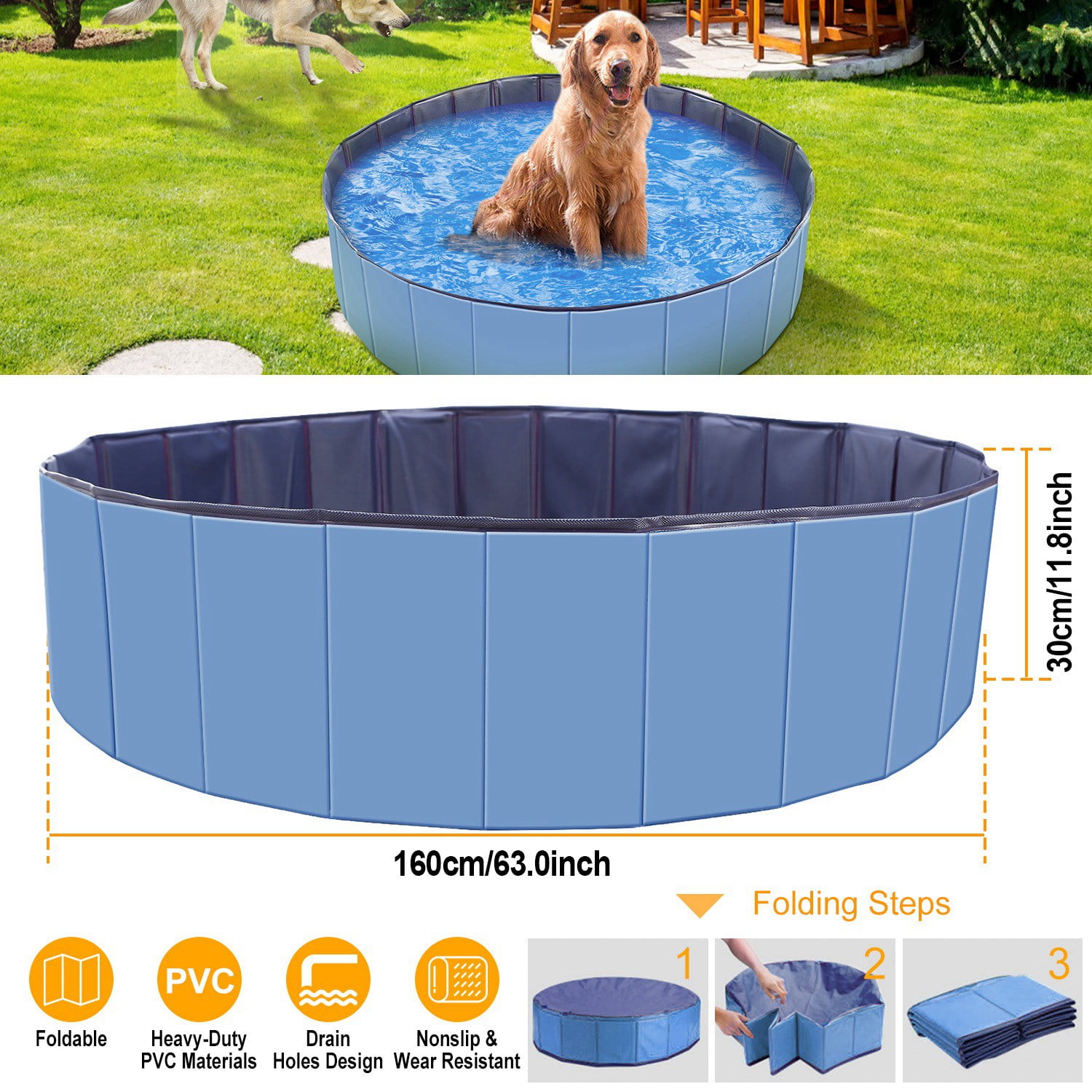 Outdoor Above Ground Foldable PVC Swimming Pool for Kids or Dog ...