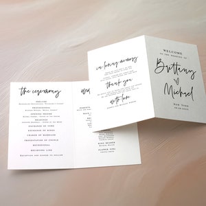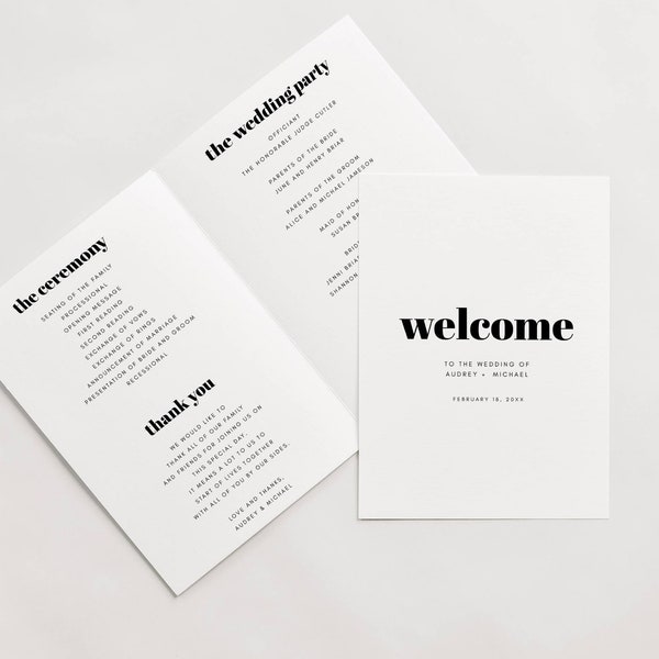 Folded Wedding Program Template, Modern Wedding Program, Minimalist ...