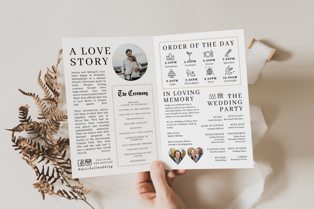 Editable Folded Wedding Program Template, Printable Fun Newspaper Style ...