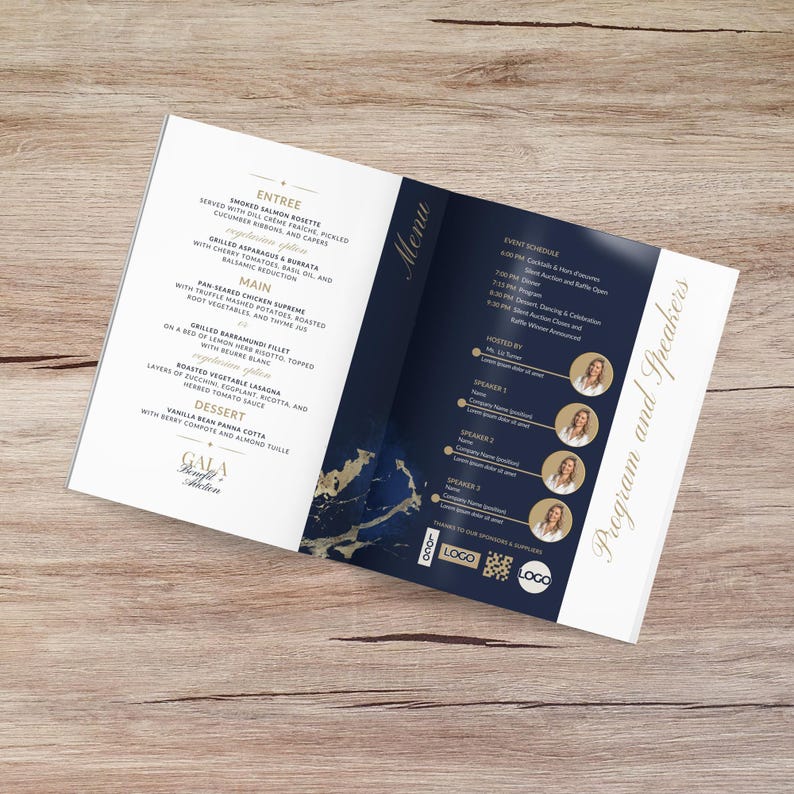 Gala Event Program Booklet Benefit Auction Navy Blue and Gold Nonprofit ...