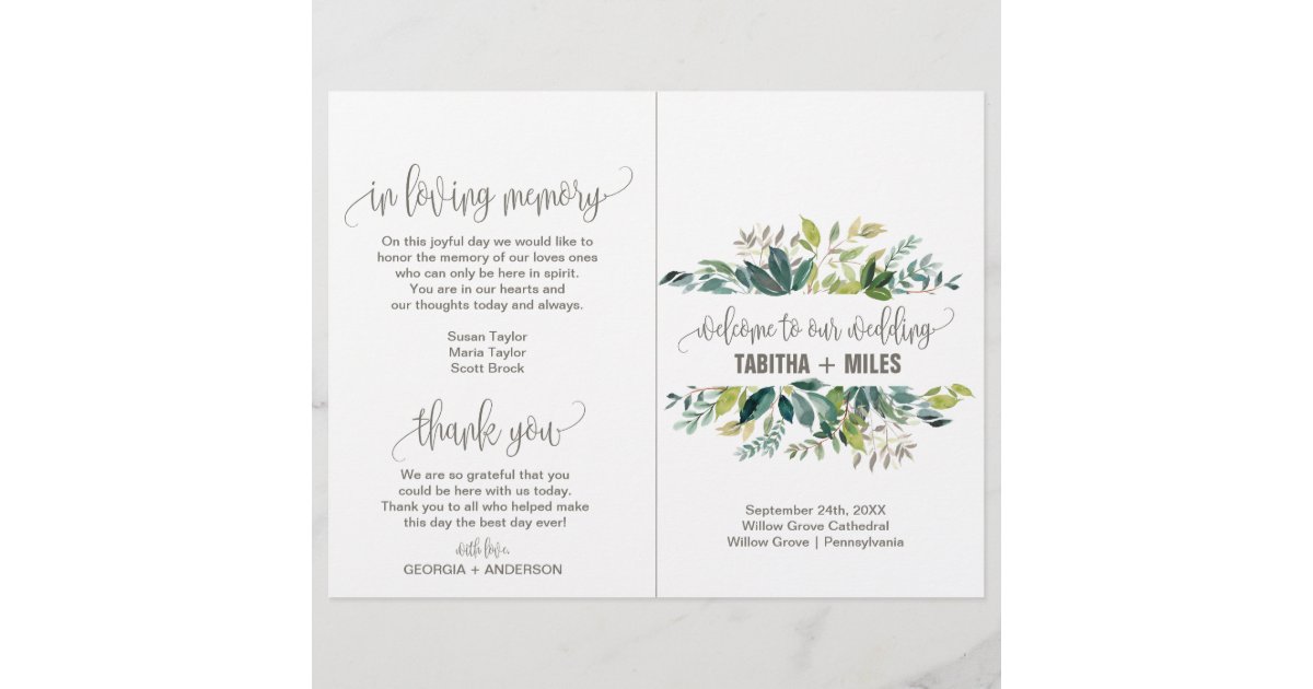 Foliage Folded Wedding Program | Zazzle