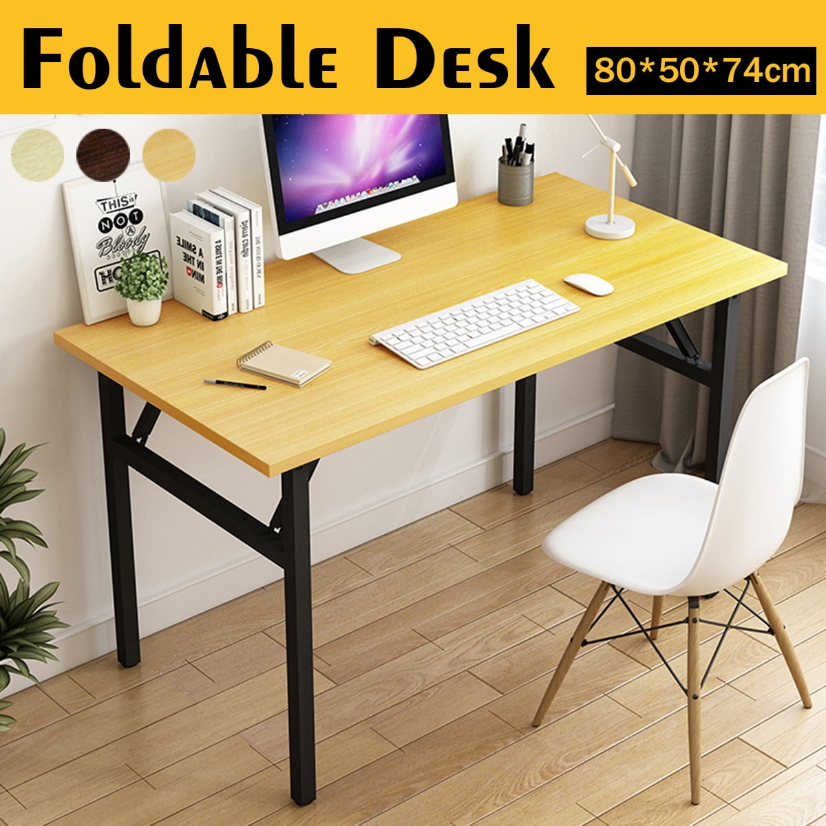 Folding Computer Table, Foldable Writing Work Desk for Home Office ...