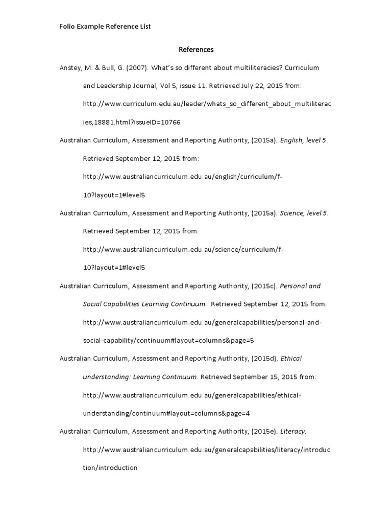 Folio Example Reference List PDF | PDF | Curriculum | Pedagogy