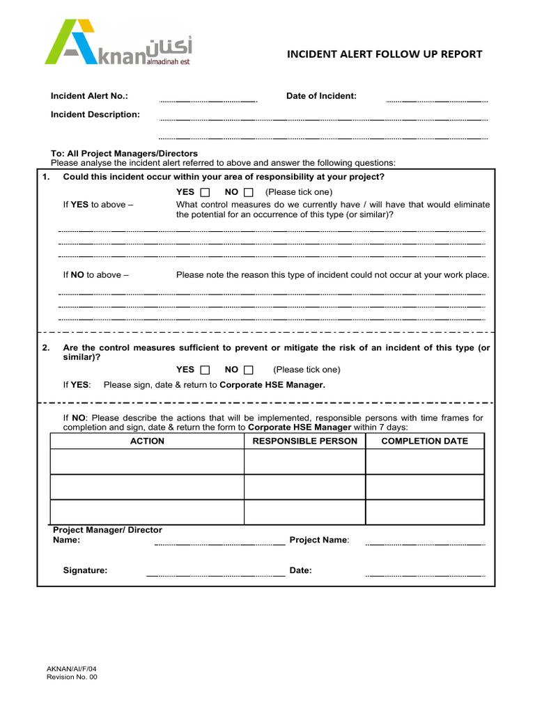 Incident Alert Follow-Up Report Template | PDF