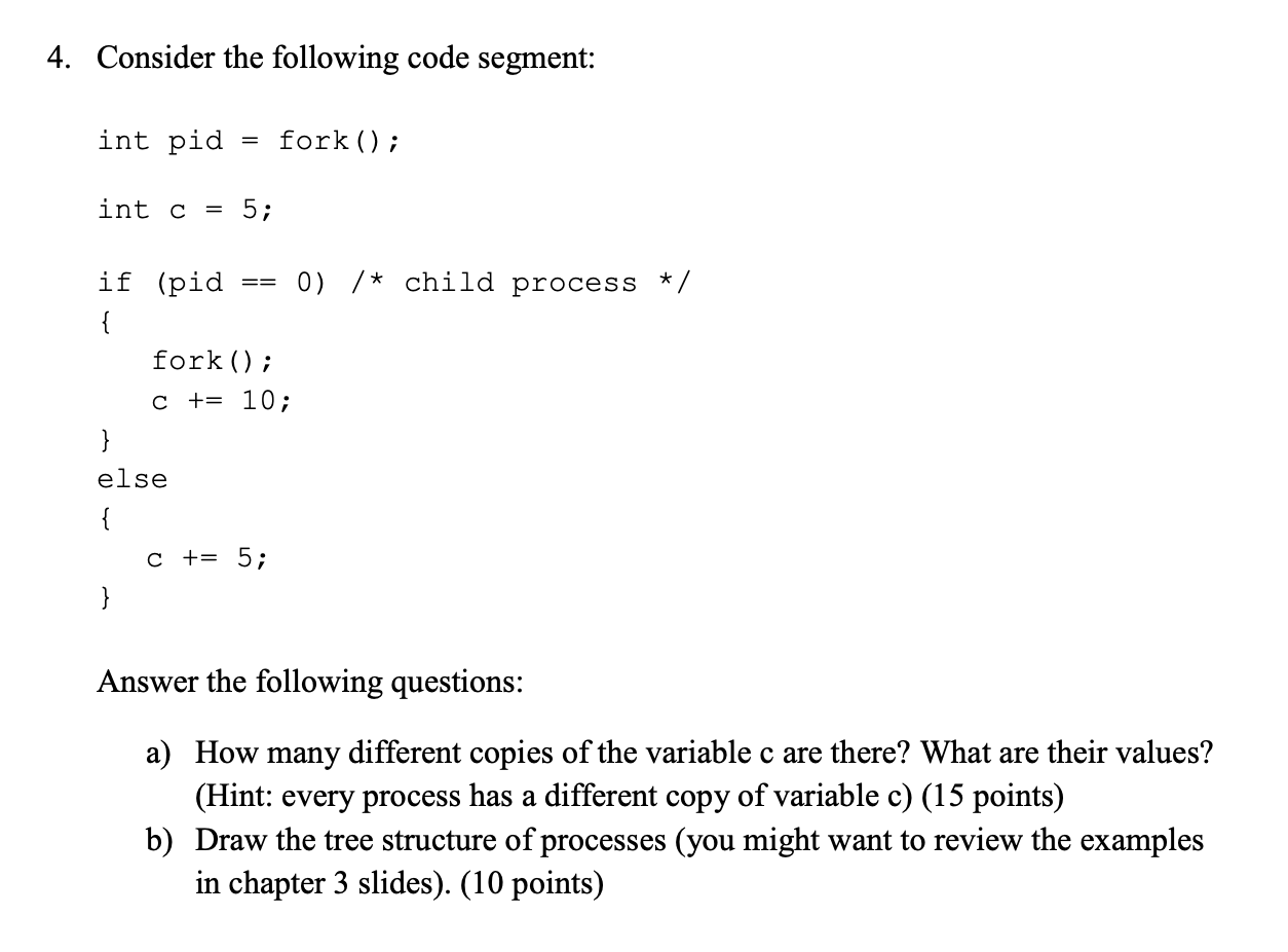 Solved Consider the following code segment: int pid = fork | Chegg.com